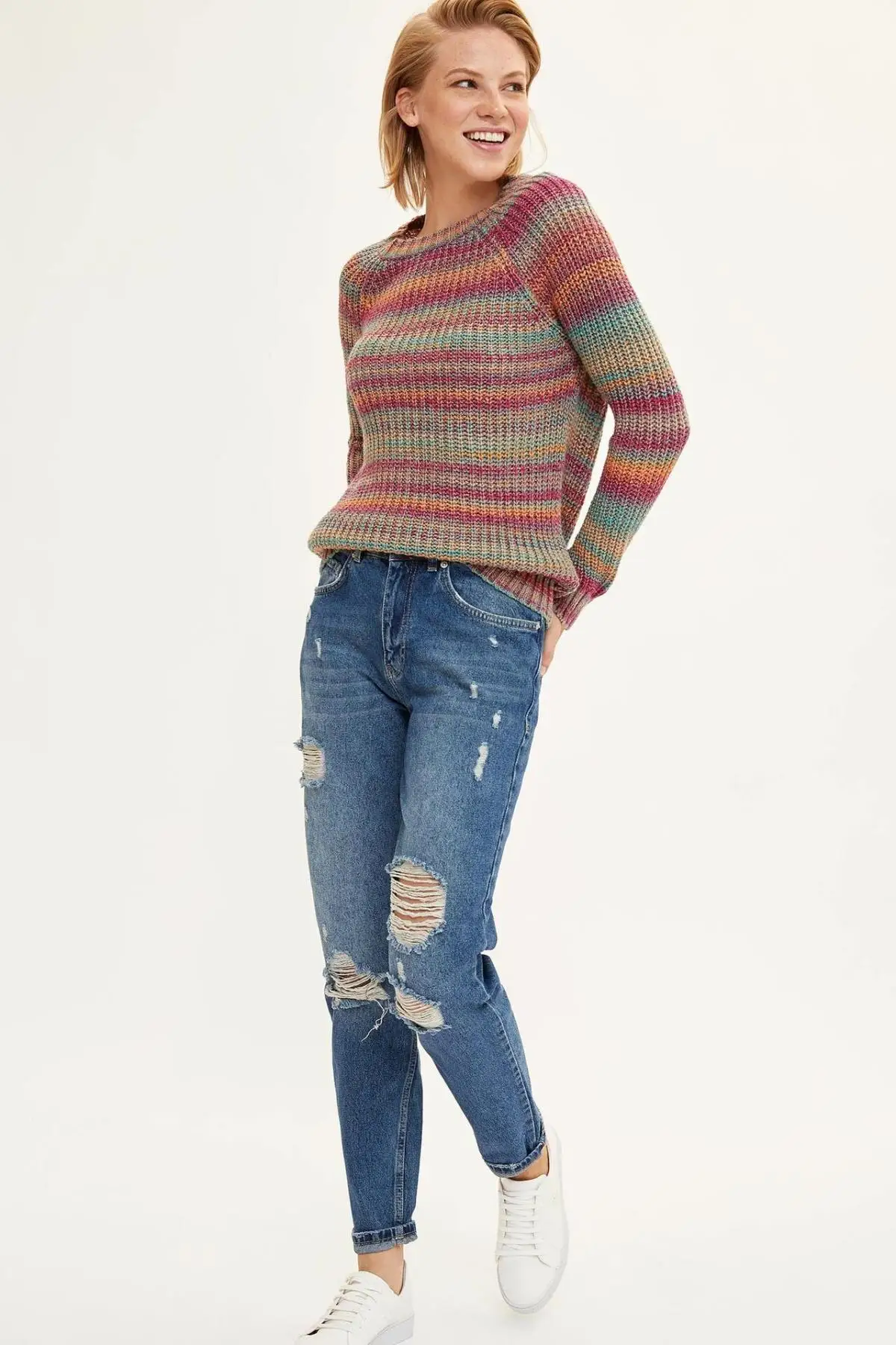 Special Offer Sudadera de tejido de punto a rayas a la moda para mujer de hecho Joker Simple jerséis de punto mujeres H5197AZ19WN Discount 50% Today!
